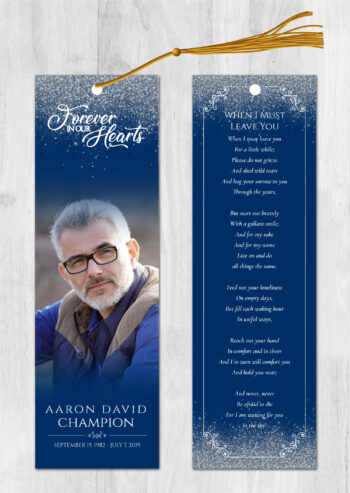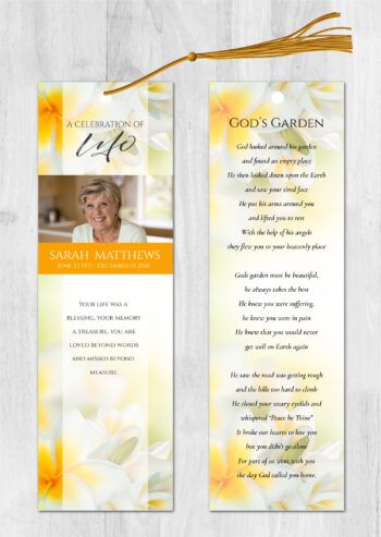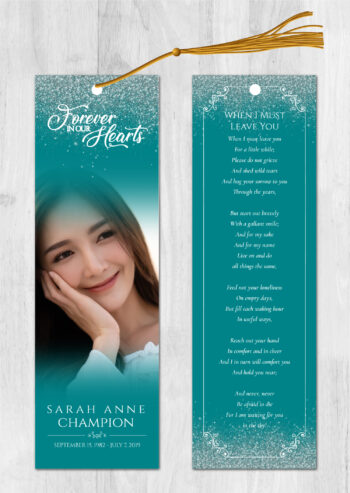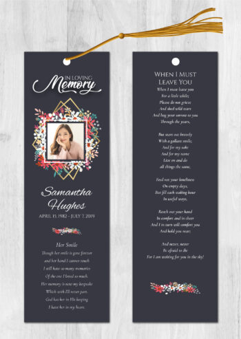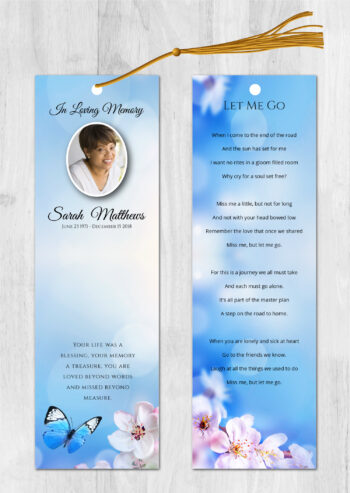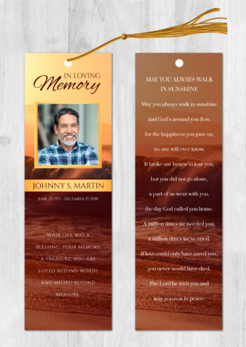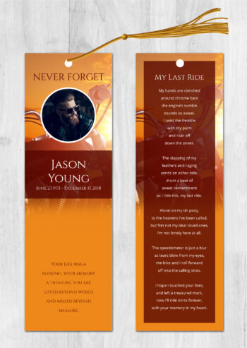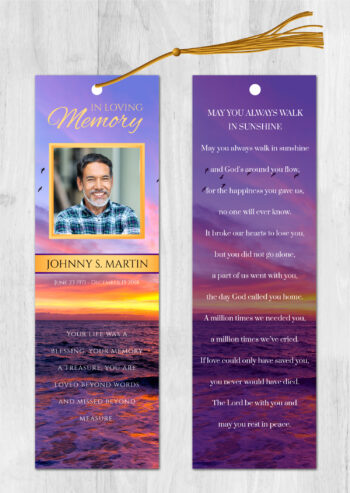 • Our memorial bookmarks (front and back) are 2.5″x8.5″