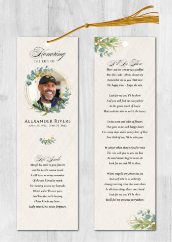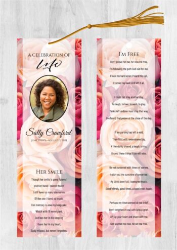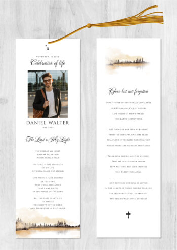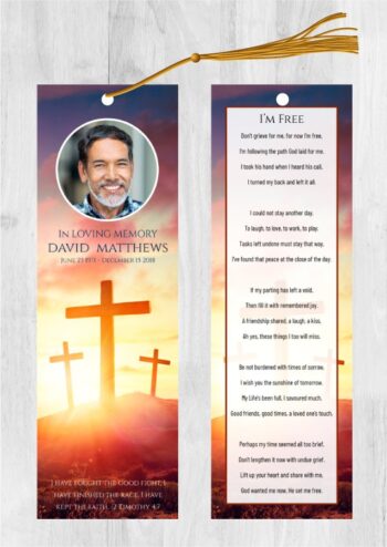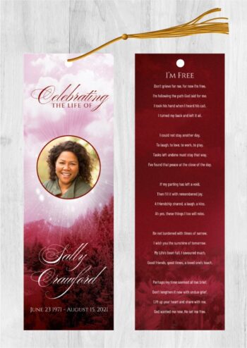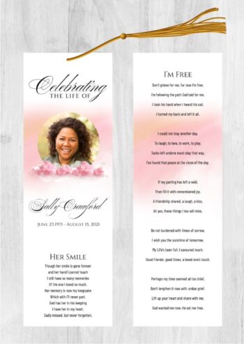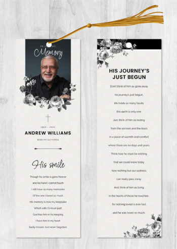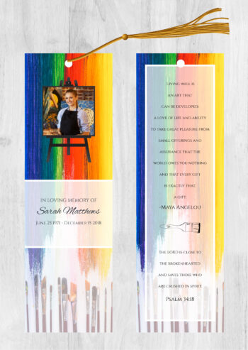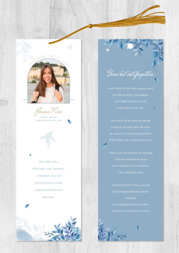 • Our memorial bookmarks (front and back) are 2.5″x8.5″