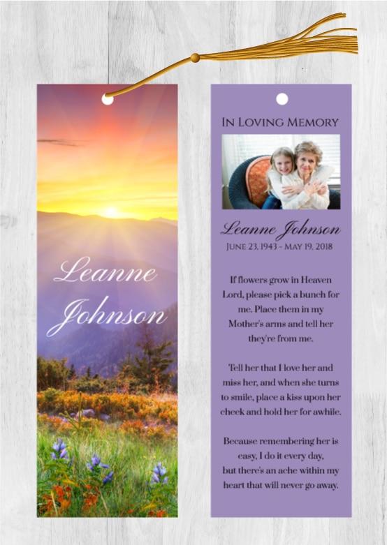 - Our memorial bookmarks (front and back) are 2.5″x8.5″