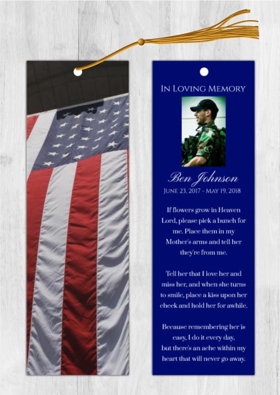 - Our memorial bookmarks (front and back) are 2.5″x8.5″
