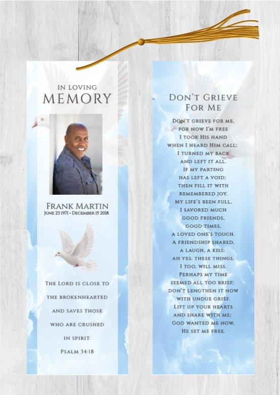 Free UPS 2-day Air Shipping Included with orders over $50 (overnight shipping is available). Orders are printed and shipped the following day after the order is placed. No need to wait for a designer, you can customize this design yourself with our online design tool! It’s simple and easy. Just select the options below and click the “next” button to customize the design with your text and photos. You can also choose to have us customize the design for you. Our memorial bookmarks (front and back) are 2.5″x8.5″. All memorial bookmarks are printed on 110lb matte cover card stock or 110lb glossy cover card stock.