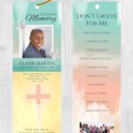 • Our memorial bookmarks (front and back) are 2.5″x8.5″