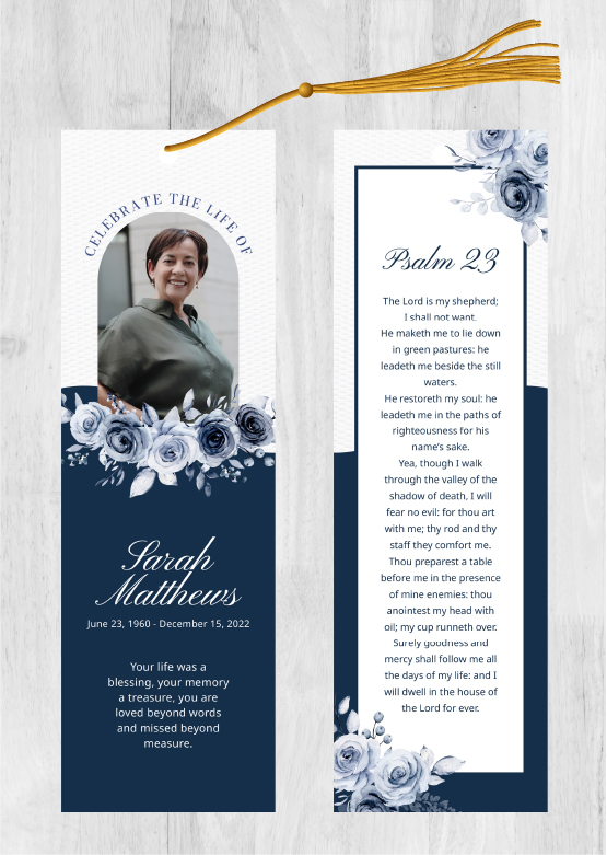 - Our memorial bookmarks (front and back) are 2.5″x8.5″