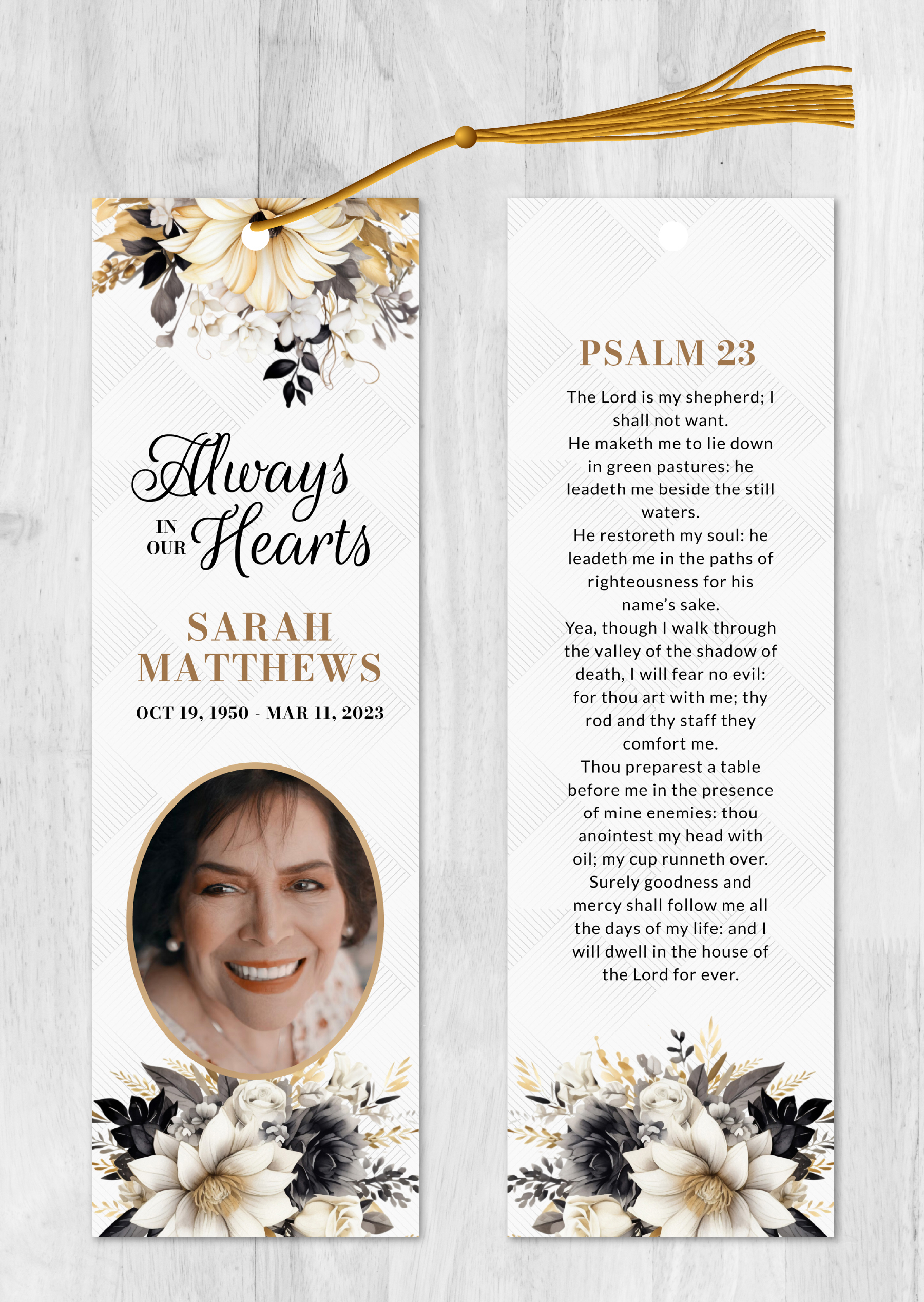 - Our memorial bookmarks (front and back) are 2.5″x8.5″