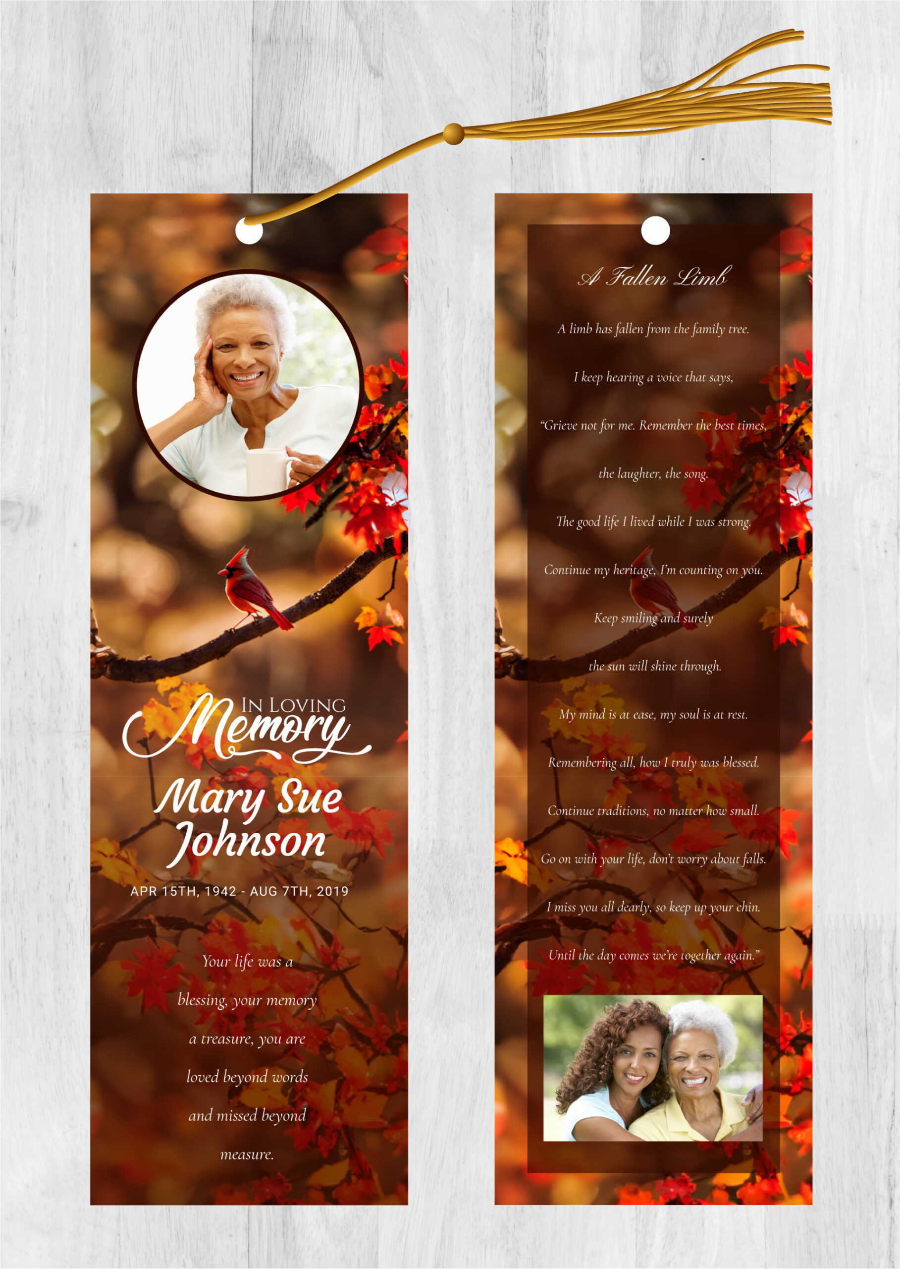 - Our memorial bookmarks (front and back) are 2.5″x8.5″