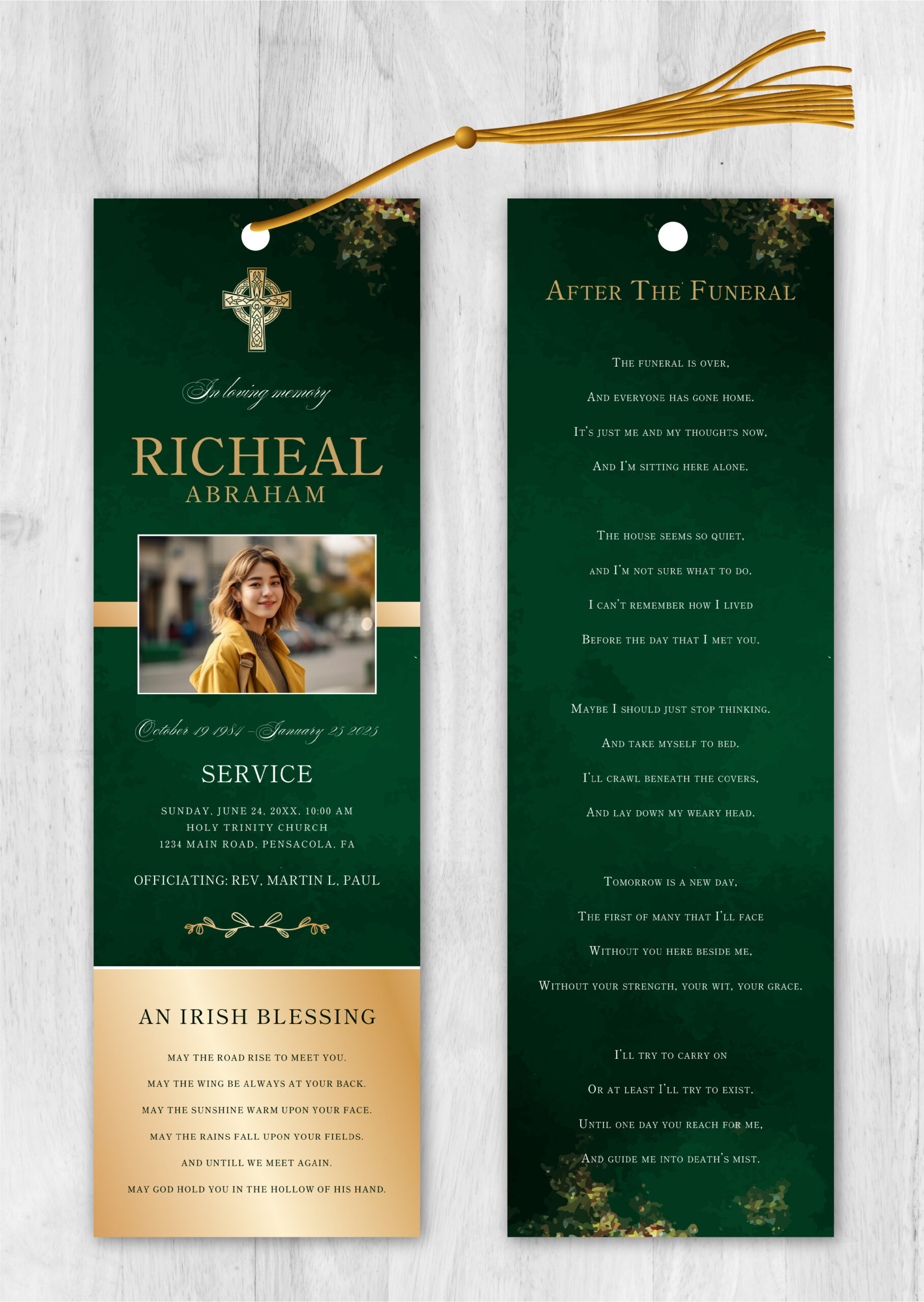 - Our memorial bookmarks (front and back) are 2.5″x8.5″