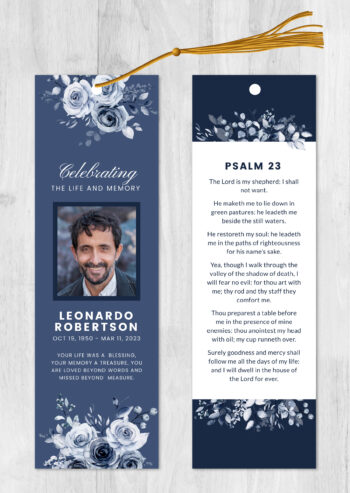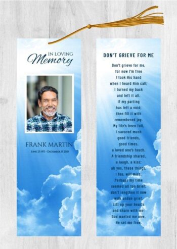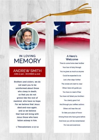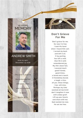 - Our memorial bookmarks (front and back) are 2.5″x8.5″