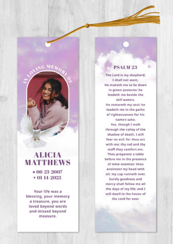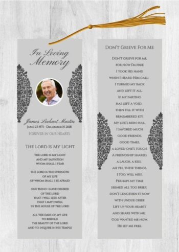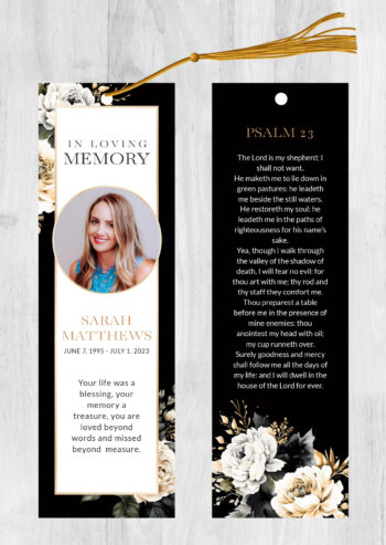 - Our memorial bookmarks (front and back) are 2.5″x8.5″